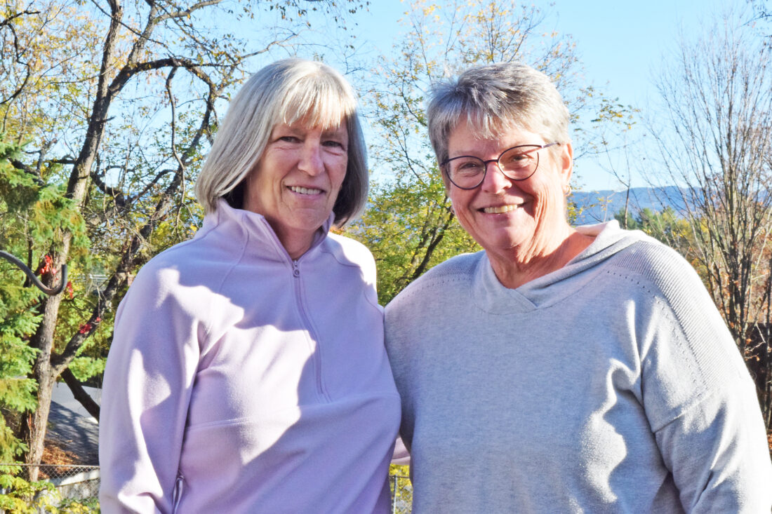 Joan Valentine, right, and Kim Moran are pictured in Valentine’s back yard, where many children have played over the approximately 40 years that she owned and operated a family child care, on Thursday, Oct. 9. (News photo — Grace McIntyre)