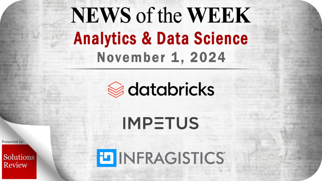Analytics and Data Science News for the Week of November 1; Updates from Databricks, Impetus, Infragistics & More