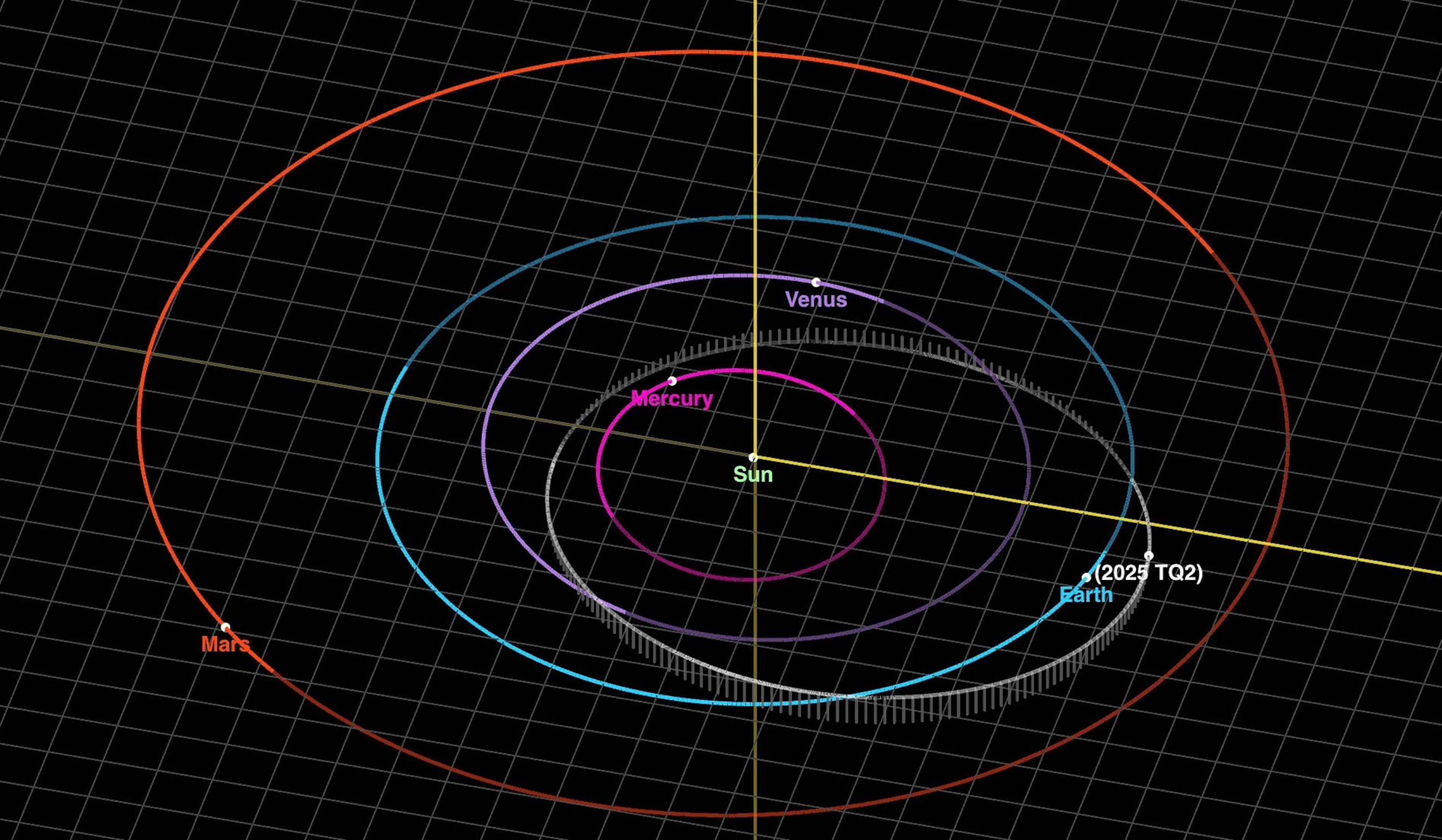 In this screen grab from a video, the orbit of 2025 TQ2 is shown close to Earth’s orbit.