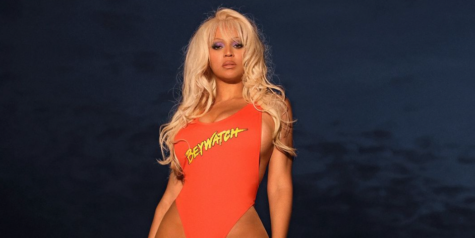 Elsewhere in the clip, Beyoncé donned the famous red swimsuit of Casey Jean Parker, the character Anderson played in Baywatch. In a cheeky play on words, singer’s costume instead read ‘Beywatch’.