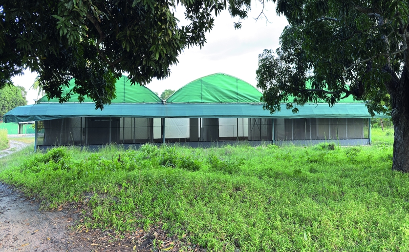 This large, screened enclosure in Tanzania allows scientists to safely test new mosquito repellents in a controlled but realistic outdoor environment.