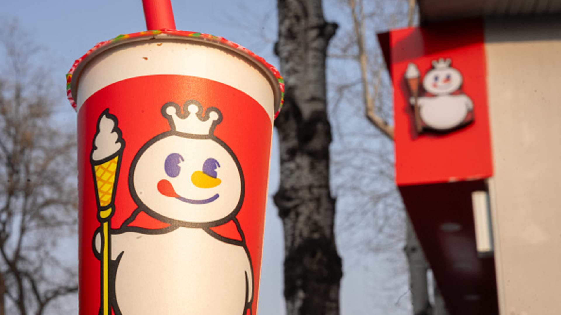 The Snow King mascot on a cup at a Mixue store in Beijing, China, on Thursday, Feb. 27, 2025.