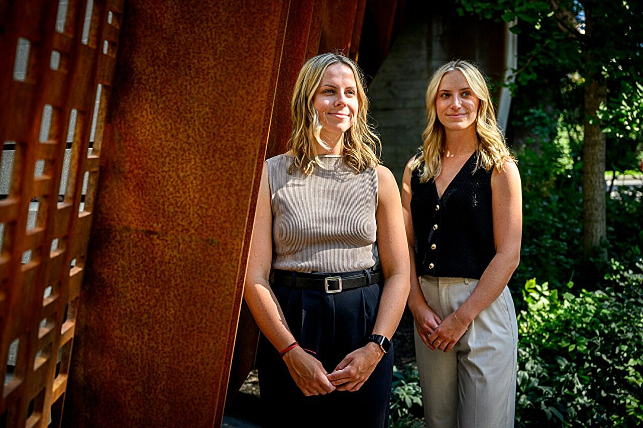 “We’re really different people,” Cassandra Dean (left) says of her relationship with fraternal twin Alexis Dean, “but somehow we ended up following this similar path.” Credit: Matthew Modoono/Northeastern University