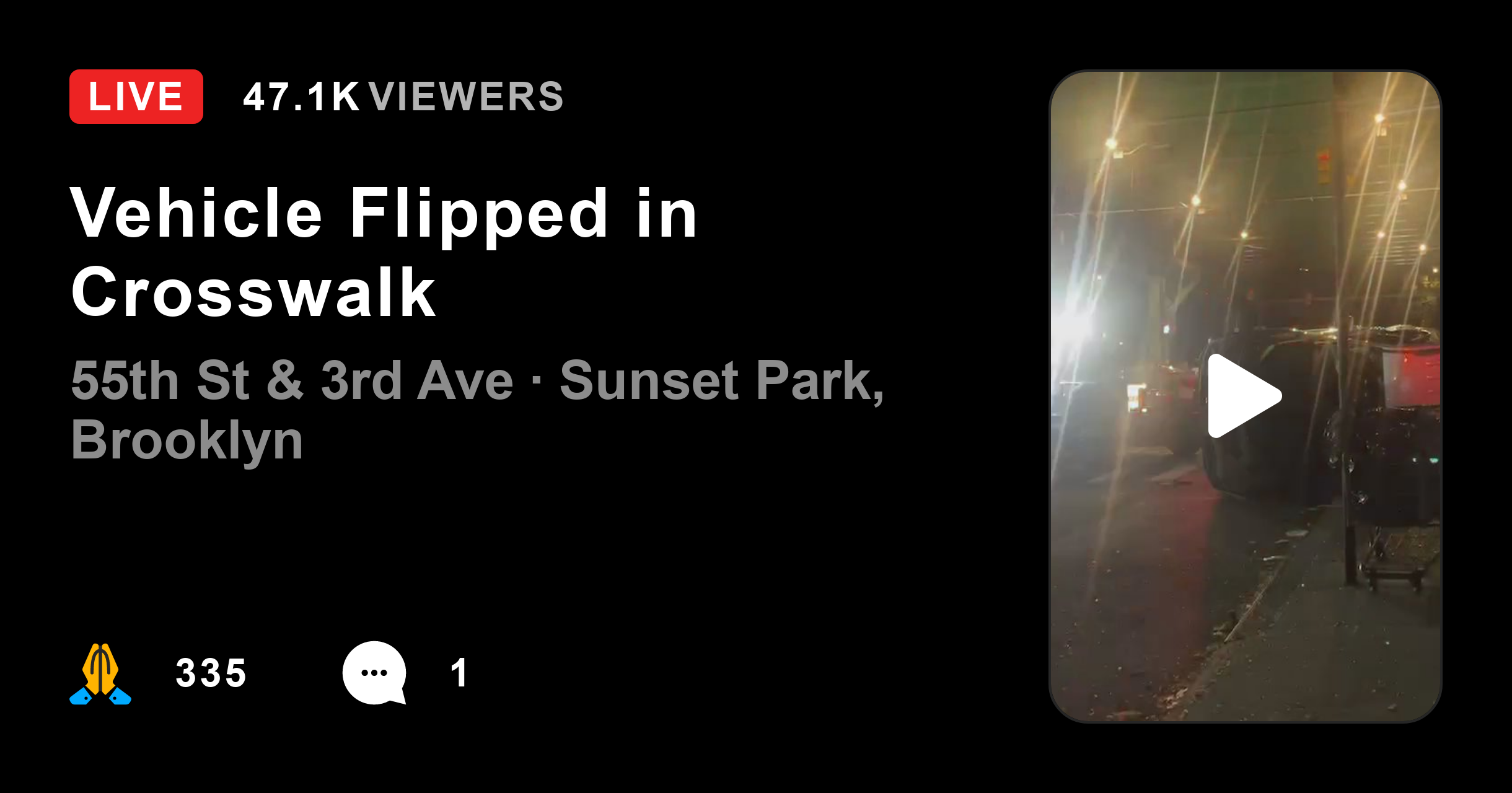 CitizenVehicle Flipped in CrosswalkEmergency responders are on the scene of a hit-and-run involving a flipped vehicle at the intersection of 55th and 3rd. Yesterday 8:21:40 PM….2 hours ago