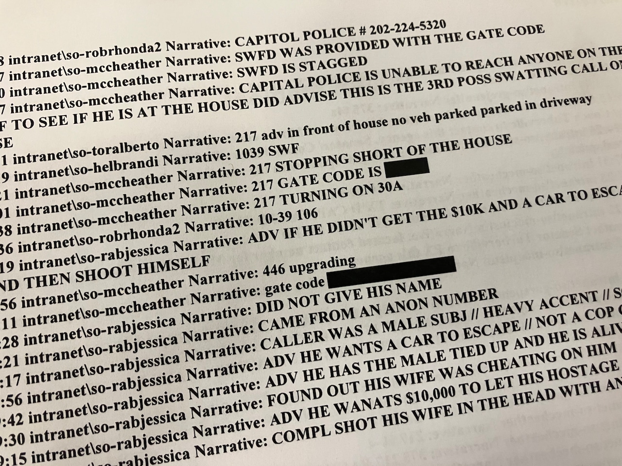 A copy of a portion of the records request of a police incident report on the Dec. 25, 2023, swatting incident at U.S. Sen. Tommy Tuberville’s home in Santa Rosa Beach, Fla.records from the Walton County Sheriff’s Department in Santa Rosa Beach, Fla.