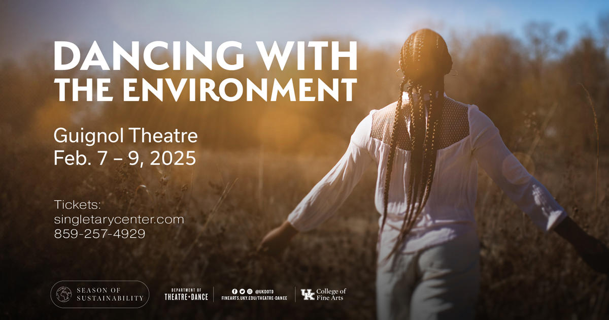 “Dancing with the Environment” performances will take place in the Guignol Theatre located in the Fine Arts Building, 465 Rose St. Performances are 7:30 p.m. Friday, Feb. 7 and Saturday, Feb. 8 , and 2 p.m. Sunday, Feb. 9. Tickets are available by visiting the Singletary Center for the Arts at scfatickets.com or by calling the box office at (859) 257-4929. Tickets are $20.59 for adults and $14.40 for students.
