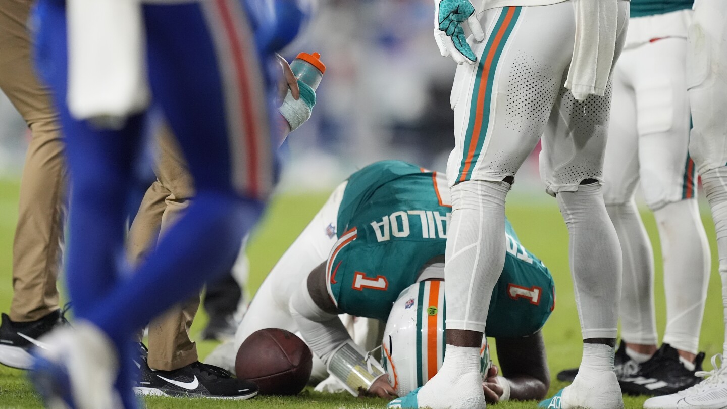 MIAMI GARDENS, Fla. (AP) — Miami Dolphins quarterback Tua Tagovailoa was diagnosed with a concussion for the third time in his NFL career, leaving his team’s game Thursday night against Buffalo after running into defensive back Damar Hamlin and hitting the back of his head against the turf.