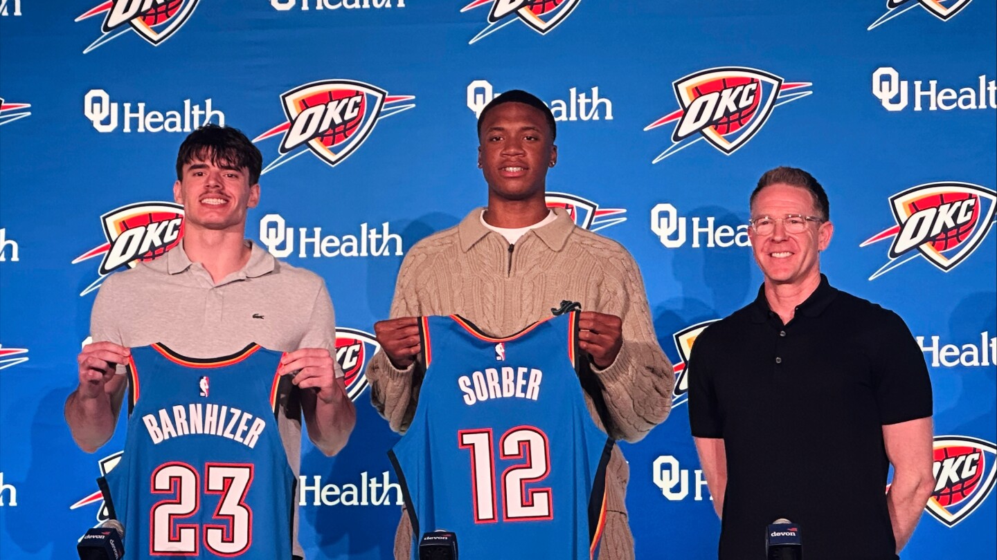 OKLAHOMA CITY (AP) — Oklahoma City draft picks Thomas Sorber and Brooks Barnhizer sounded like Thunder veterans during their introductory press conference on Saturday.