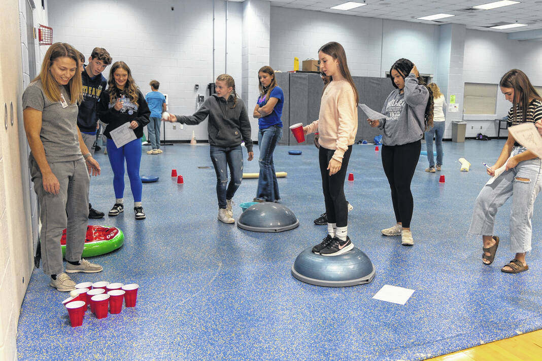STEMM Expo participants took part in physical therapy assisting activities such as visual simulation, stroke simulation, balance challenges, an obstacle course and designing an exercise program based on patient case scenarios, during a breakout session led by Sara Young and Erynn Hanford of the Edison State physical therapist assistant program.
