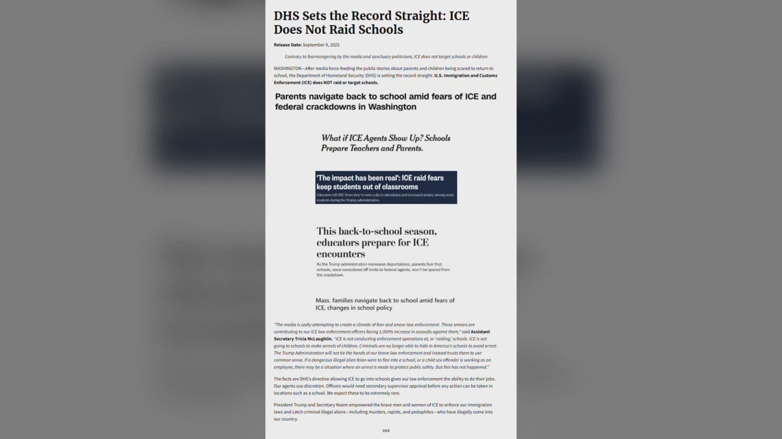 A memo from the Department of Homeland Security rescinded those guidelines in January of this year. In September, the DHS issued a press release which said, in part, that “ICE is not conducting enforcement operations at, or ‘raiding,’ schools.”