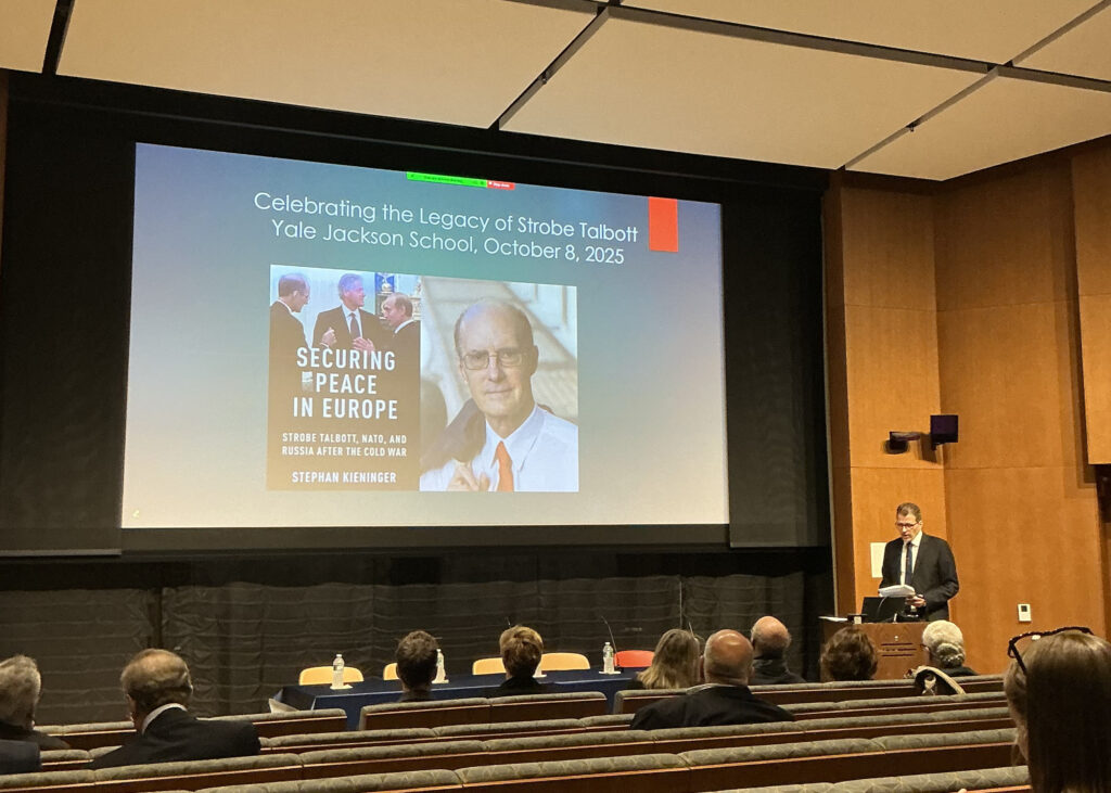 The event included remarks from Talbott’s former colleagues and introduced a new book on his role in reshaping post–Cold War diplomacy — “Securing Peace in Europe: Strobe Talbott, NATO, and Russia after the Cold War” by Stephan Kieninger.