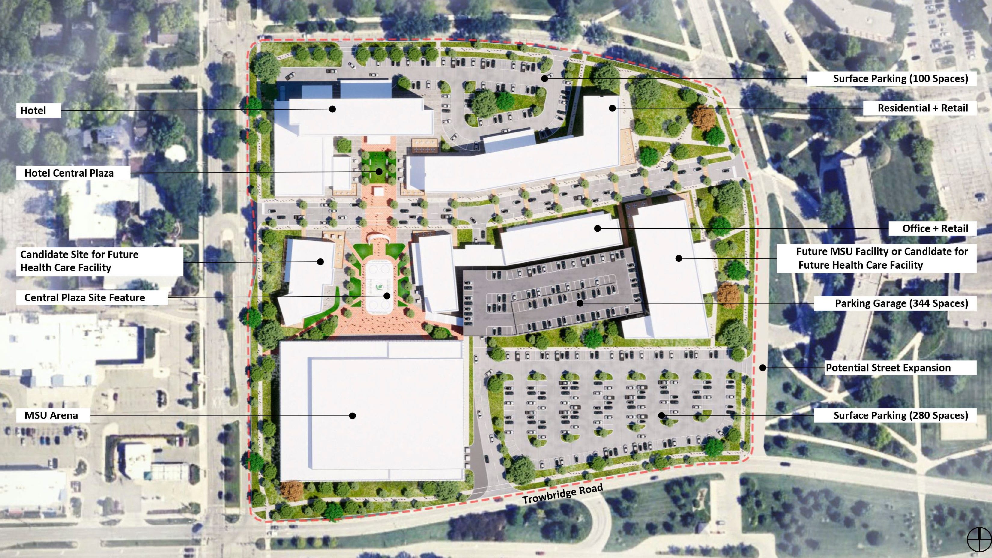 Spartan Gateway District will feature a 6,000-seat sports arena, hotel, housing, restaurants, parking and more.