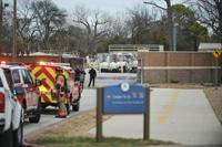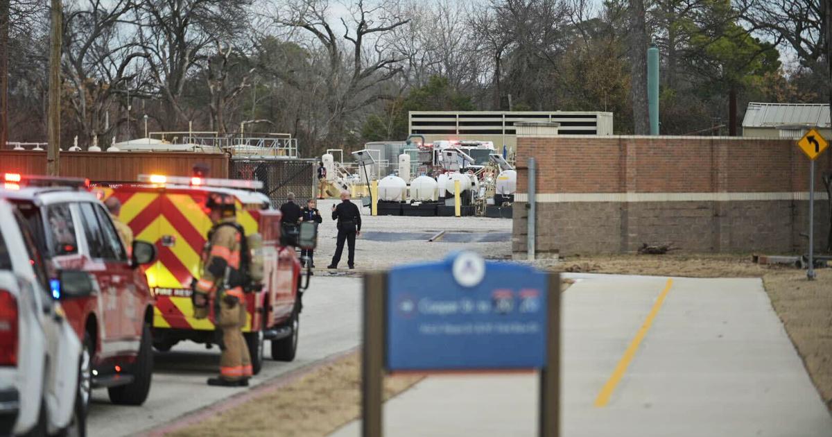 Police and firefighters gather at a natural gas well site after a fire started Jan. 30 near the Continuing Education and Workforce Development building. A MavAlert was sent around 4:30 p.m. instructing people to evacuate the facility.