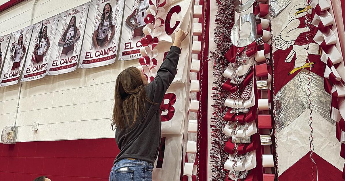 The schools maintenance department played a critical role in hanging the mega mum in the gymnasium in time for the pep rally on Friday. It will be moved to the football field for the homecoming game.