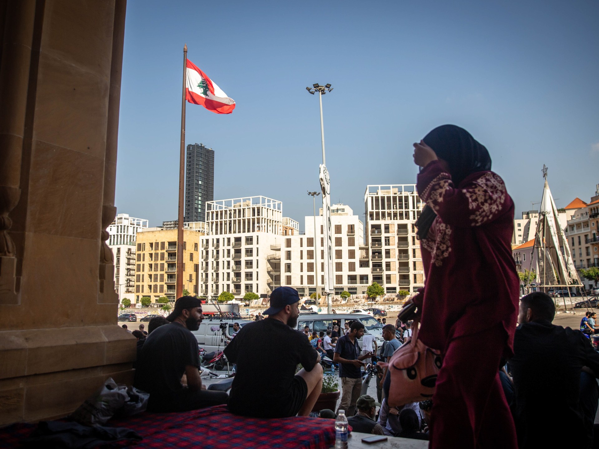 Mariam quickly packed a few bags of clothes and fled to downtown Beirut, where she is now sleeping on the steps of a mosque with hundreds of other people displaced from her community.