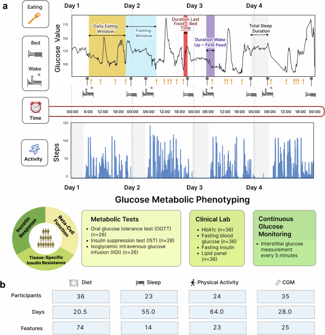 By leveraging the power of real-time digital health monitoring technologies, we monitored participants’ dietary intake, sleep characteristics, physical activity, and glucose levels in real-time throughout the study period (at least 14 consecutive days). Participants were asked not to change their sleep and activity habits during the study. Moreover, participants were required to maintain their normal eating, sleep, and physical activity habits without change during the study.