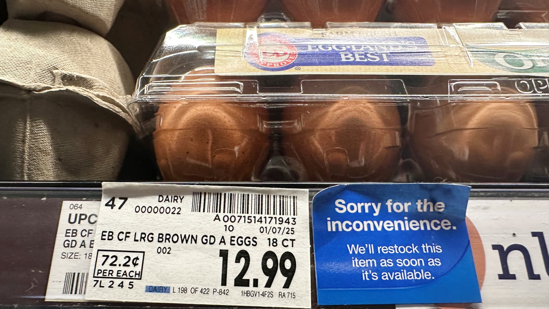 Eggs for sale at 72.2 cents per egg from a supermarket on Feb. 10, 2025 in Monterey Park, California, U.S.