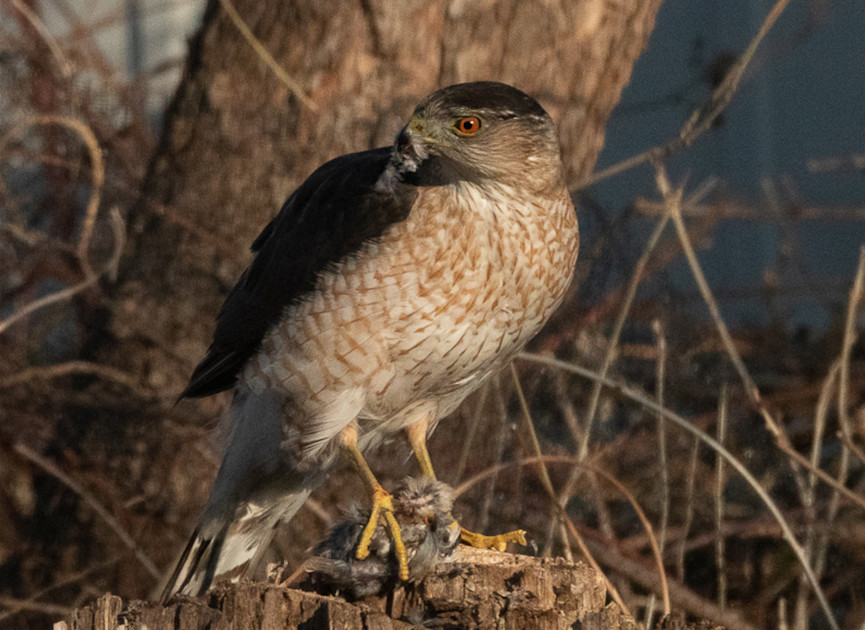 Adult Cooper’s hawk dispatching a house sparrow. Image: Vladimir Dinets.