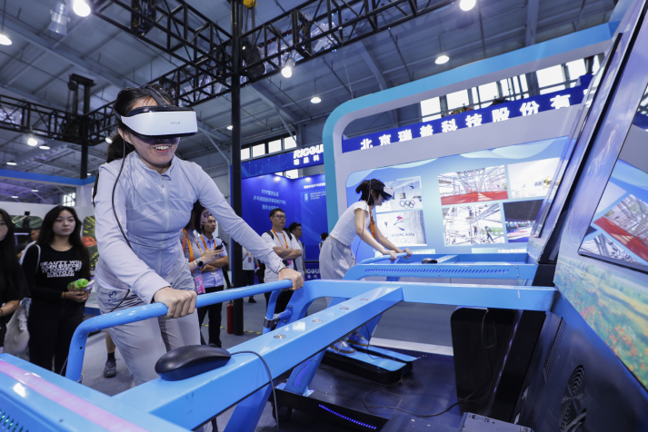 Visitors try virtual skating at the China International Fair for Trade in Services in Beijing on September 10 (XINHUA)