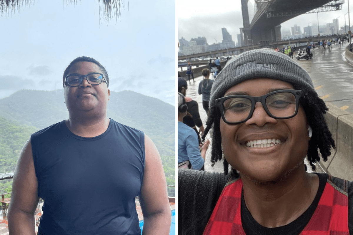 Some of those initial runs were grueling. I remember running on the West Side Highway and people would fly by with strollers, or I’d see someone triple my age running so much faster than me. In the beginning, I was super anxious. I didn’t want to run with anybody. But when I got out of that mindset and just appreciated my body for what it could do, my relationship with running started to change. I began to run to or from appointments instead of taking the train. I ran with two of my fraternity brothers from Harlem all the way down to the Lower East Side to a bakery to try these viral croissants. I saw the city in a different way than I had before. That gave me the bug. I started participating in races and joining clubs. I started seeing the number on the scale go down, and that was motivating, too. Eventually I lost 100 pounds.