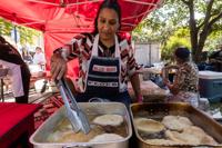 Dallas resident Malinda Cortez, 59, fries bread during Indigenous Peoples’ Day Fair on Oct. 14 on the Central Library mall. Frybread is a traditional Indigenous dish.