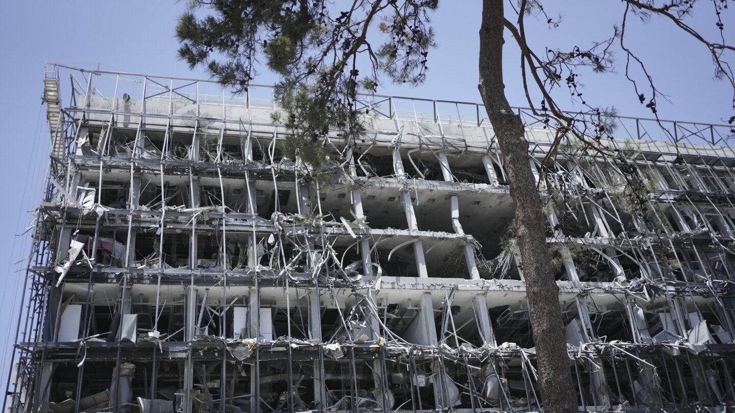 The campus has been closed since the strike, although media were allowed to visit Thursday. Large piles of rock, twisted metal and other debris were strewn on campus. There were shattered windows, collapsed ceiling panels and charred walls.