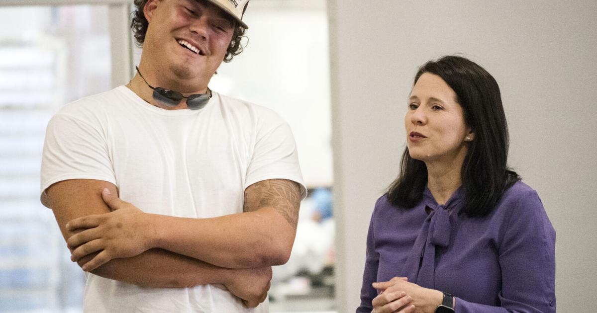 Medical Assistant student Jordyn Martin, who was recognized for being the school 12th grade Student of the Year, poses for a photo with Principal Holly Boffy and Lafayette Parish Schools Superintendent Francis Touchet during the Celebration of Success Friday, May 3, 2024, at the W.D. and Mary Baker Smith Career Center in Lafayette, La. Students were recognized for completing various vocational programs, certificates and earing recognition for their academic achievements.