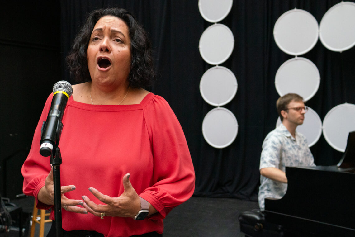 Evelyn Santiago Schulz, a vocalist for The Philadelphia Orchestra, sings at the 7th Annual Latin American Book Fair on Oct. 4 | AIDAN GALLO / THE TEMPLE NEWS