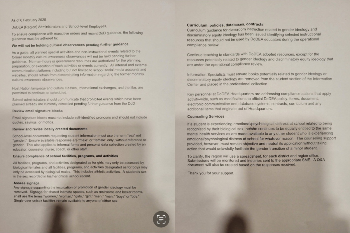 “Learning is a sacred and foundational right that is now being limited for students in DoDEA schools,” said Natalie Tolley, a plaintiff on behalf of her three children at Aviano. “The implementation of these EOs, without any due process or parental or professional input, is a violation of our children’s right to access information that prevents them from learning about their own histories, bodies, and identities. I have three daughters, and they, like all children, deserve access to books that both mirror their own life experiences and that act as windows that expose them to greater diversity. The administration has now made that verboten in DoDEA schools.”
