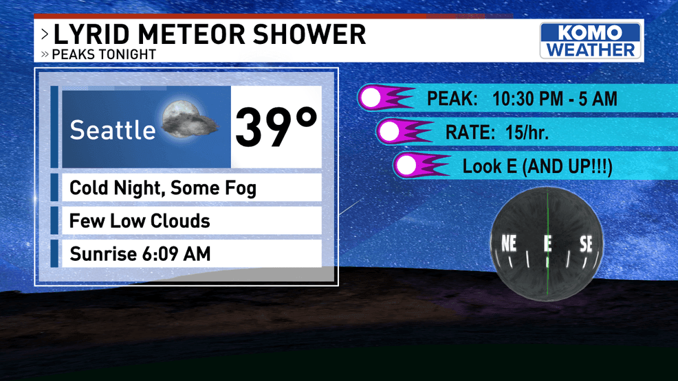 SEATTLE — When you think of meteor showers, you may think of the impressive Perseids in August. But April has a falling star display of its own as well. The Lyrid meteor shower peaks Monday night.