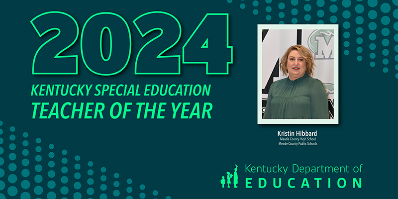 (LOUISVILLE, KY) – Kristin Hibbard, a moderate and severe disabilities educator at Meade County High School, was honored as the Council for Exceptional Children’s 2024 Kentucky Special Education Teacher of the Year. The naming took place during the Kentucky Exceptional Children’s Conference at the Galt House in Louisville on Nov. 25.