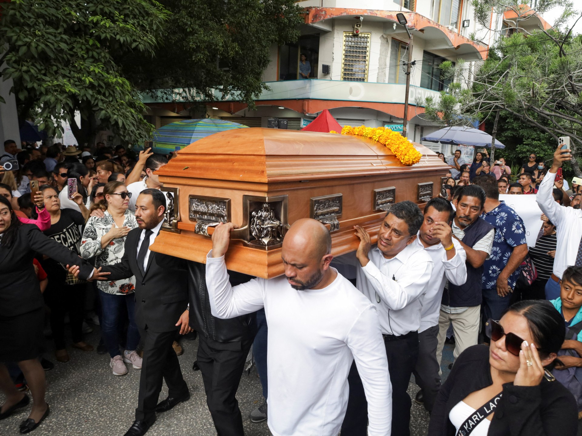Mourners pay their respects during the funeral service for Alejandro Arcos on October 7 [Oscar Ramirez/Reuters]