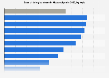 Ease of doing business in Mozambique in 2020, by topic [Graph], International Economics, June 30, 2020. [Online]. Available: https://www.statista.com/statistics/1244179/ease-of-doing-business-in-mozambique-by-topic/