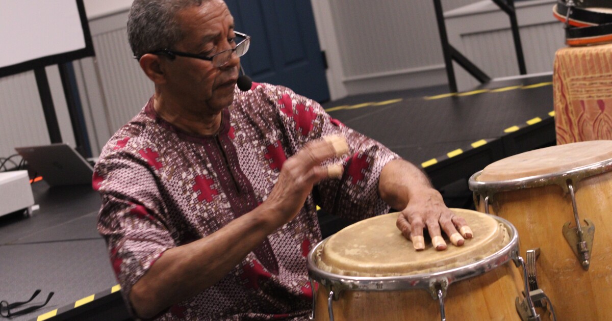 Musician Jorge Santiago-Arce hosted the Afro-Caribbean music workshop. He has been doing this workshop in libraries, schools and other venues since 1987. He explained that it explores the music of different African cultures that met as they were enslaved as agricultural workers. The music, too, is a symbol of resilience.