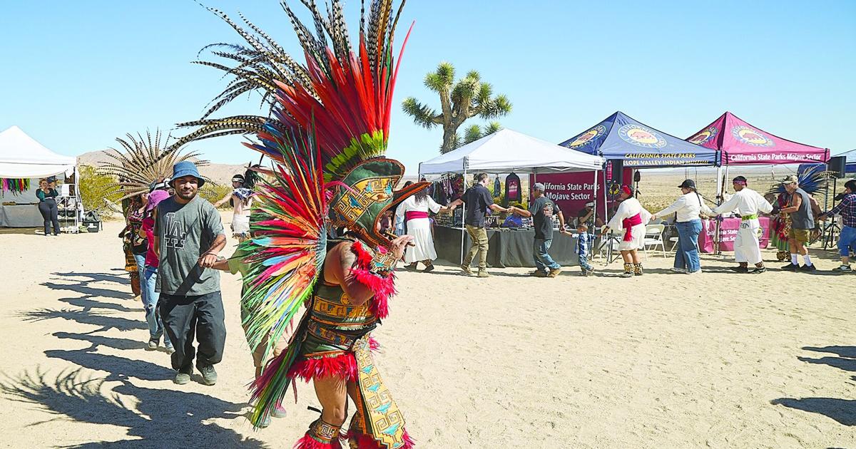 Danza Azteca Xochipilli dancers lead audience participants in a traditional Aztec dance Saturday during the Native American Celebration, hosted by California State Parks and the Antelope Valley Indian Museum in Lake Los Angeles. The celebration, which draws participants from across the Southwest, featured food, crafts, demonstrations, storytelling, bird singing and lectures on Native American life and culture.
