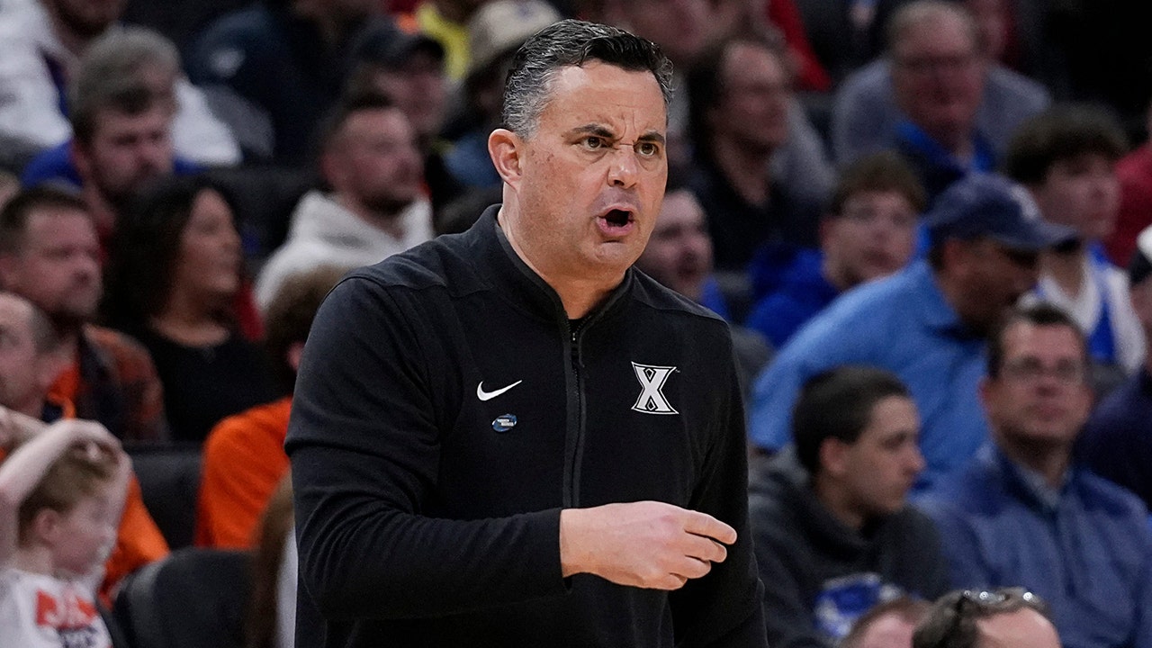 Xavier head coach Sean Miller shouts to his defense in the first half of the NCAA Tournament first-round game against Illinois in Milwaukee on March 21, 2025. Xavier was eliminated from the tournament after losing. (IMAGN)