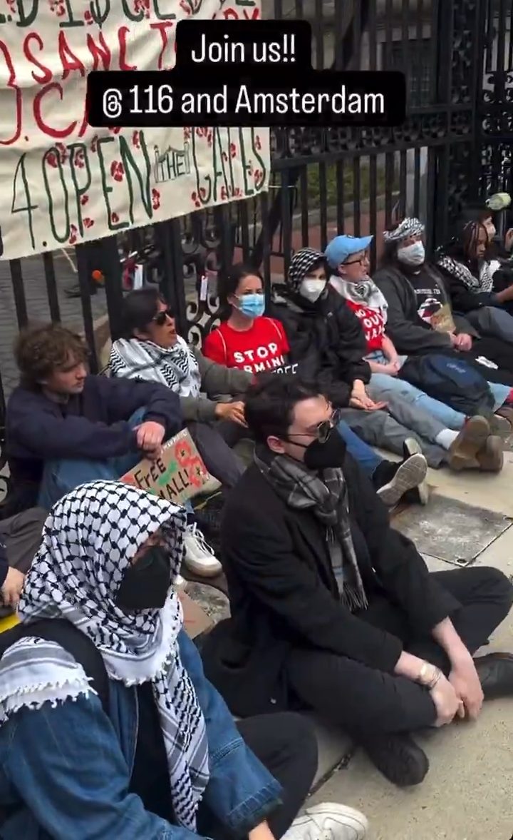 “We are monitoring a disruption involving about 10 individuals on Amsterdam Avenue chained to the campus gates. Public Safety has cut the locks, and individuals have been asked for identification. All chained individuals remained outside the gates, and NYPD is on site monitoring the small demonstration that remains outside the gates,” the spokeswoman said.