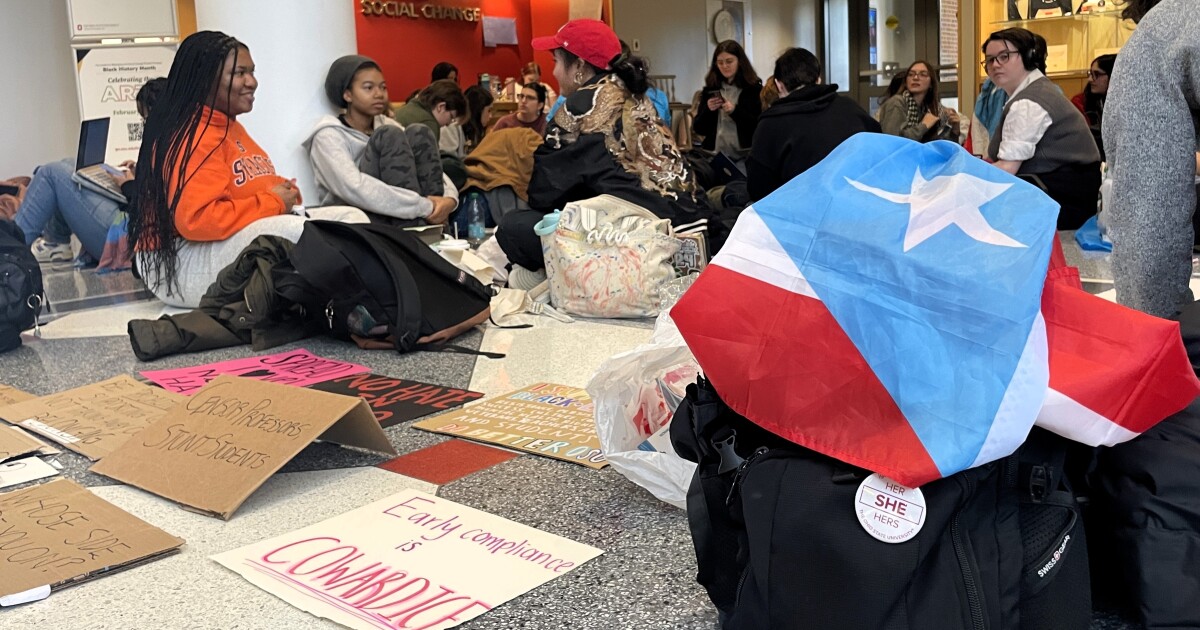 Luna Celeste-Fuentes, a freshman studying sports industry and strategic communications wore a Puerto Rican flag on her back. She is from New York and said she is now thinking about attending college elsewhere.