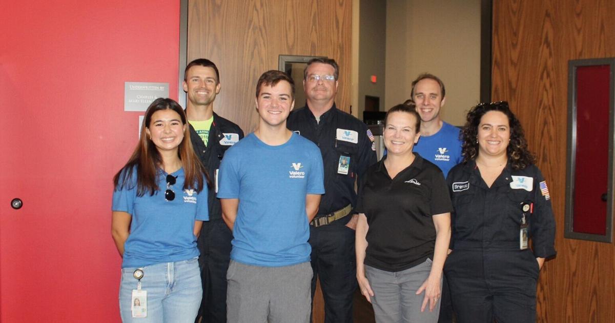 From left: Valero’s Texas City Refinery volunteer team members front row: Ashley Lane, Carter Dickson and Brenda Garcia. Back row: Wade Eveland, Jonathon Myers and Jared Nysetvold posed for a picture with Anita Jones, Linde HyCO Plant manager, second from right, at the recent science, technology, engineering, and mathematics STEM camp held at The Salvation Army Boys & Girls Club of Texas City.