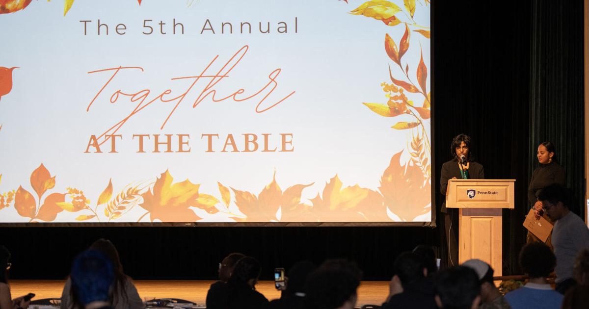 A guest speaker talks at The 5th Annual Together at the Table event in Heritage Hall on Thursday, Nov. 13, 2025 in University Park, Pa.