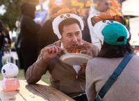 Forney resident Edwin Godinez, 39, eats grilled squid during Panda Fest on Nov. 9 at Carpenter Park in Dallas. Live demonstrations, such as paper cutting and sugar painting, were held at the event.