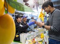 Dallas resident Suhaib Hasan, 23, grabs a mango smoothie from Icey Ice Houston Thai Street Food during Panda Fest on Nov. 9 at Carpenter Park in Dallas. The festival is held in more than 10 cities around the country.