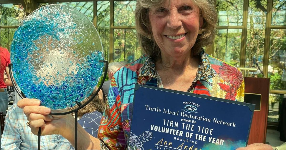 Ann Anderson received the 2024 Tide Volunteer of the Year. Anderson collects and recycles fishing lines on the two piers in the Gulf of Mexico, has participated as a sea turtle nest patrol volunteer for more than 10 years, and picks up trash for numerous clean-up events throughout the year in Galveston.