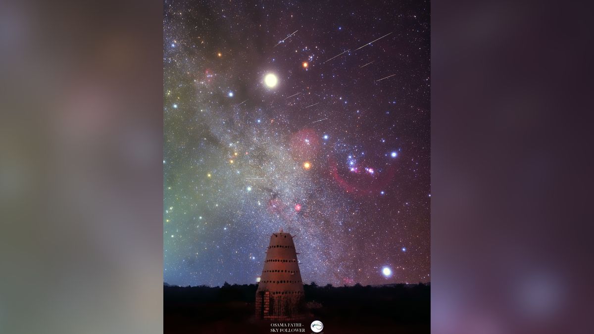 “Despite the meteor shower coinciding with a full moon this year, I managed to capture this image before its peak, successfully recording several meteors despite the presence of some light clouds that added an artistic touch to the light,” Fathi told Space.com in an email.