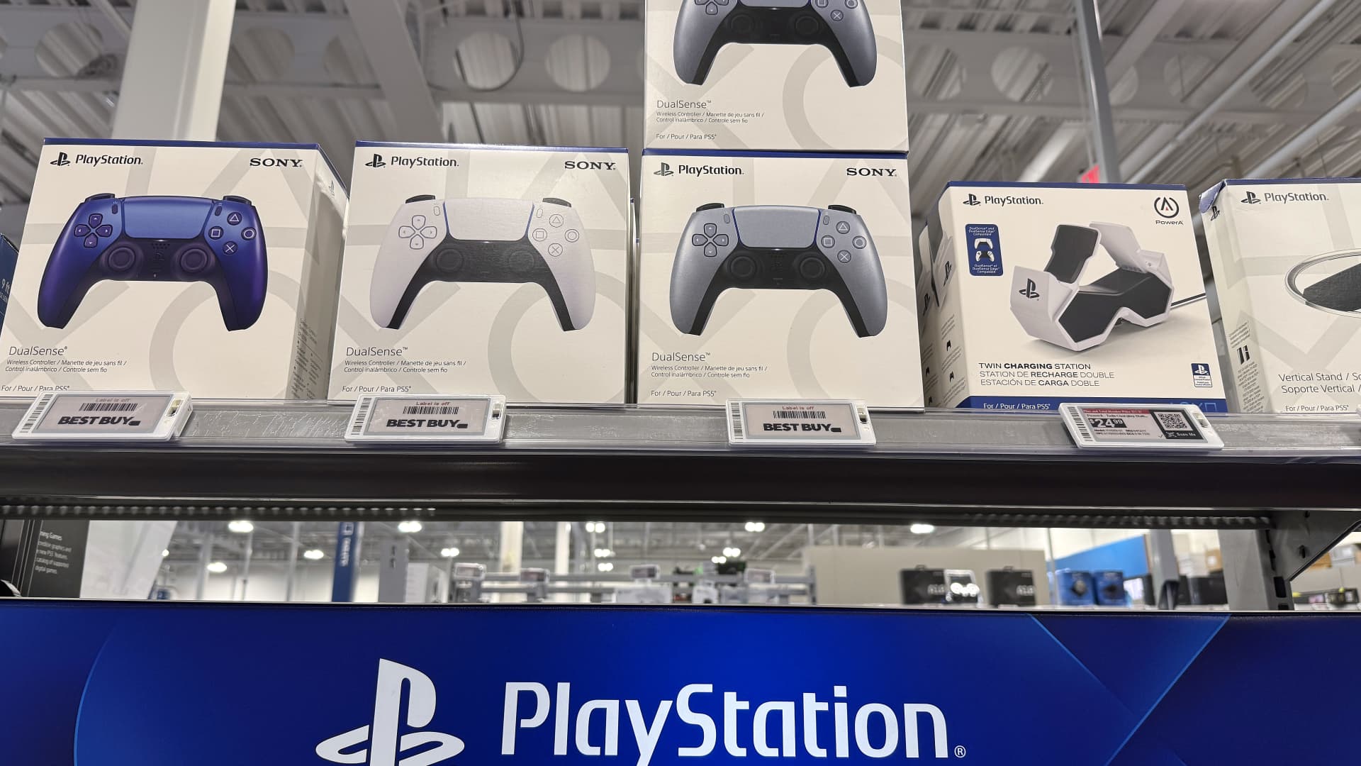 Sony PlayStation game controllers are displayed at a Best Buy store on December 17, 2024 in San Rafael, California.