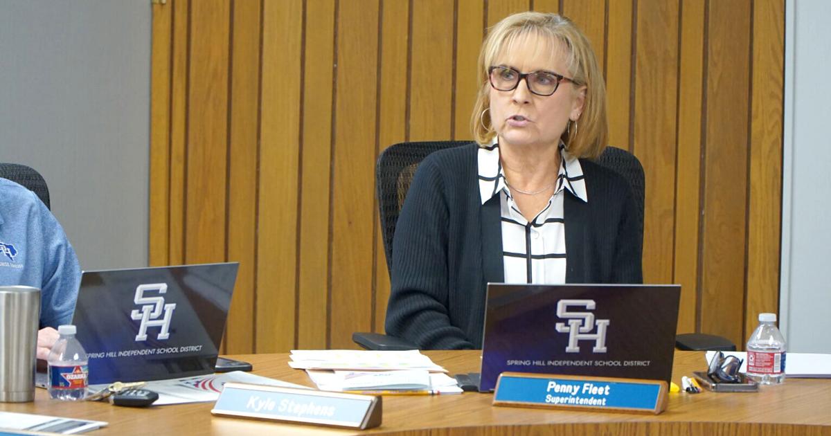 Spring Hill ISD Superintendent Penny Fleet speaks Monday during the Board of Trustees meeting. (Jordan Green/Longview News-Journal Photo)