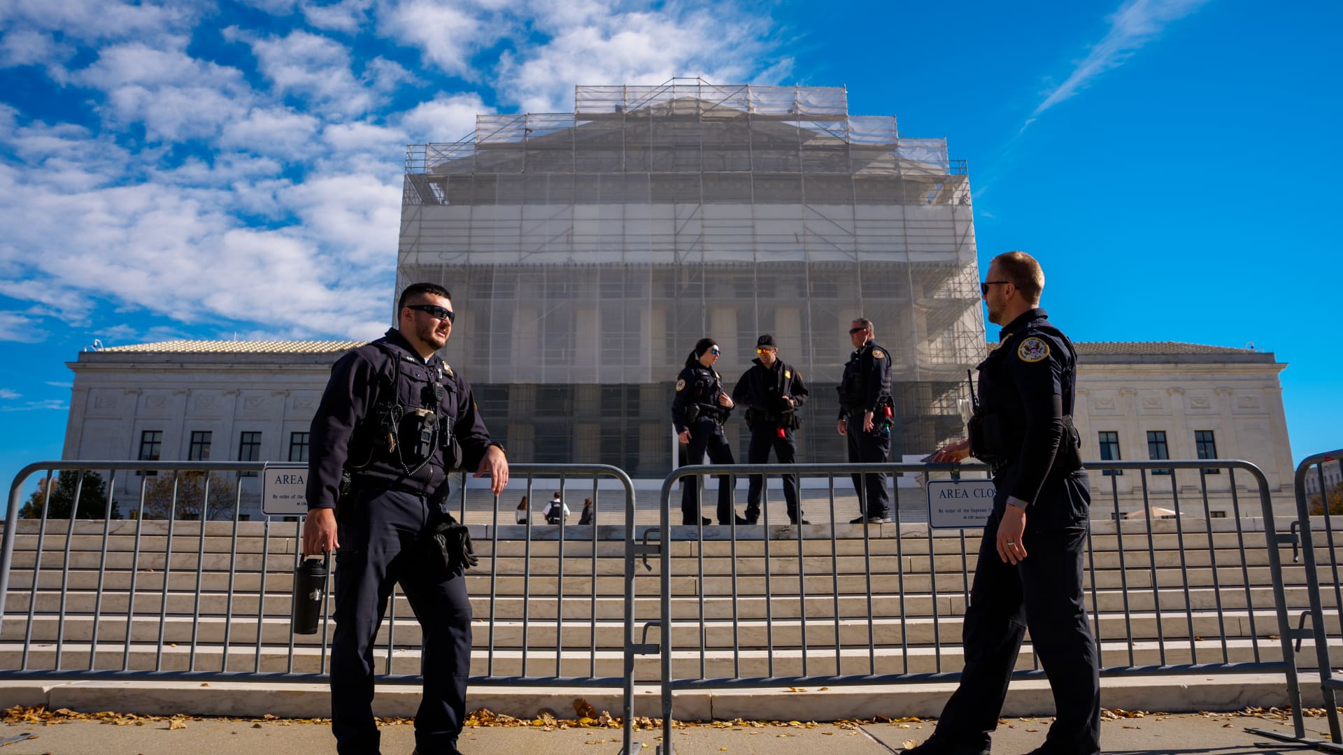 Police officers stand guard outside the Supreme Court on November 5, 2025 in Washington, DC.
