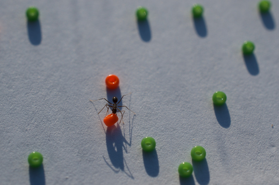 Their observations showed that workers were most prone to clear beads that lay approximately 40mm away from food towards the direction of the nest. They moved these beads for up to 50mm before dropping them, away from the route leading back to the nest. The record holder cleared 64 beads in succession.