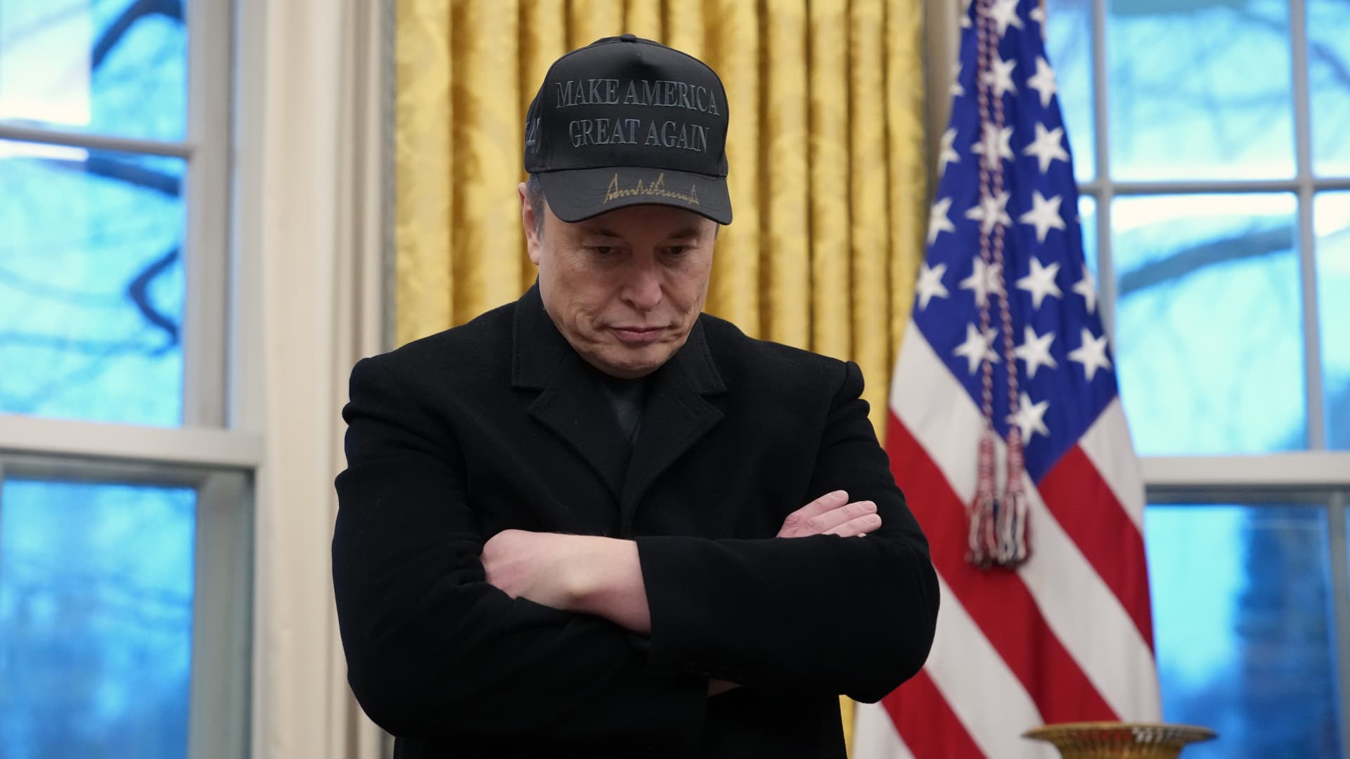Tesla and SpaceX CEO Elon Musk joins U.S. President Donald Trump during an executive order signing in the Oval Office at the White House on Feb. 11, 2025 in Washington, DC.