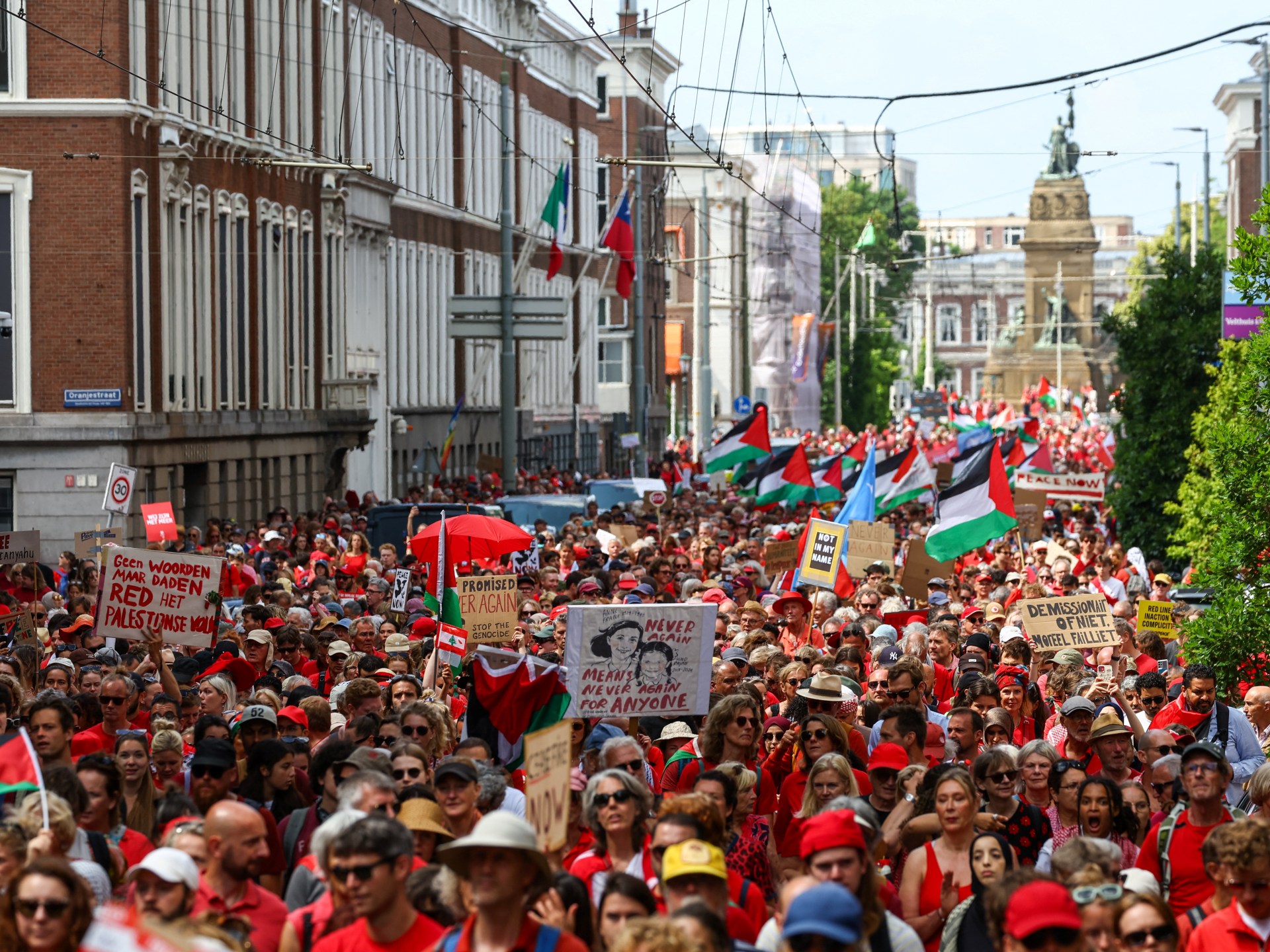 Tens of thousands of pro-Palestine demonstrators gathered in the Netherlands to oppose Israel’s genocidal war on Gaza and to call on the government to take a stronger stance, as nearly 55,300 Palestinians have now been killed in the more than 20-month-long war.